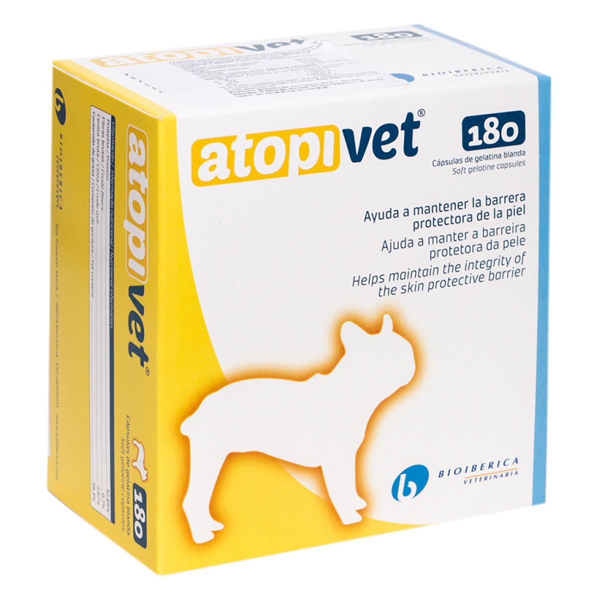 Атопивет 180 капсул – пищевая добавка для восстановления защитного барьера кожи животных, содержащая концентрат Омега 3 для собак и кошек в качестве основного действующего вещества. Дополнительными компонентами являются: нуклеотиды, гиалуроновая кислота, концентрат Омега 6, оксид цинка, витамин Е. Средство используется для лечения атопического дерматита у собак и кошек. Комплексный препарат способствует заживлению повреждённых кожных покровов, увеличению пролиферации и миграции фибропластов дермы, участвующих в регенеративной функции кожи четвероногих.